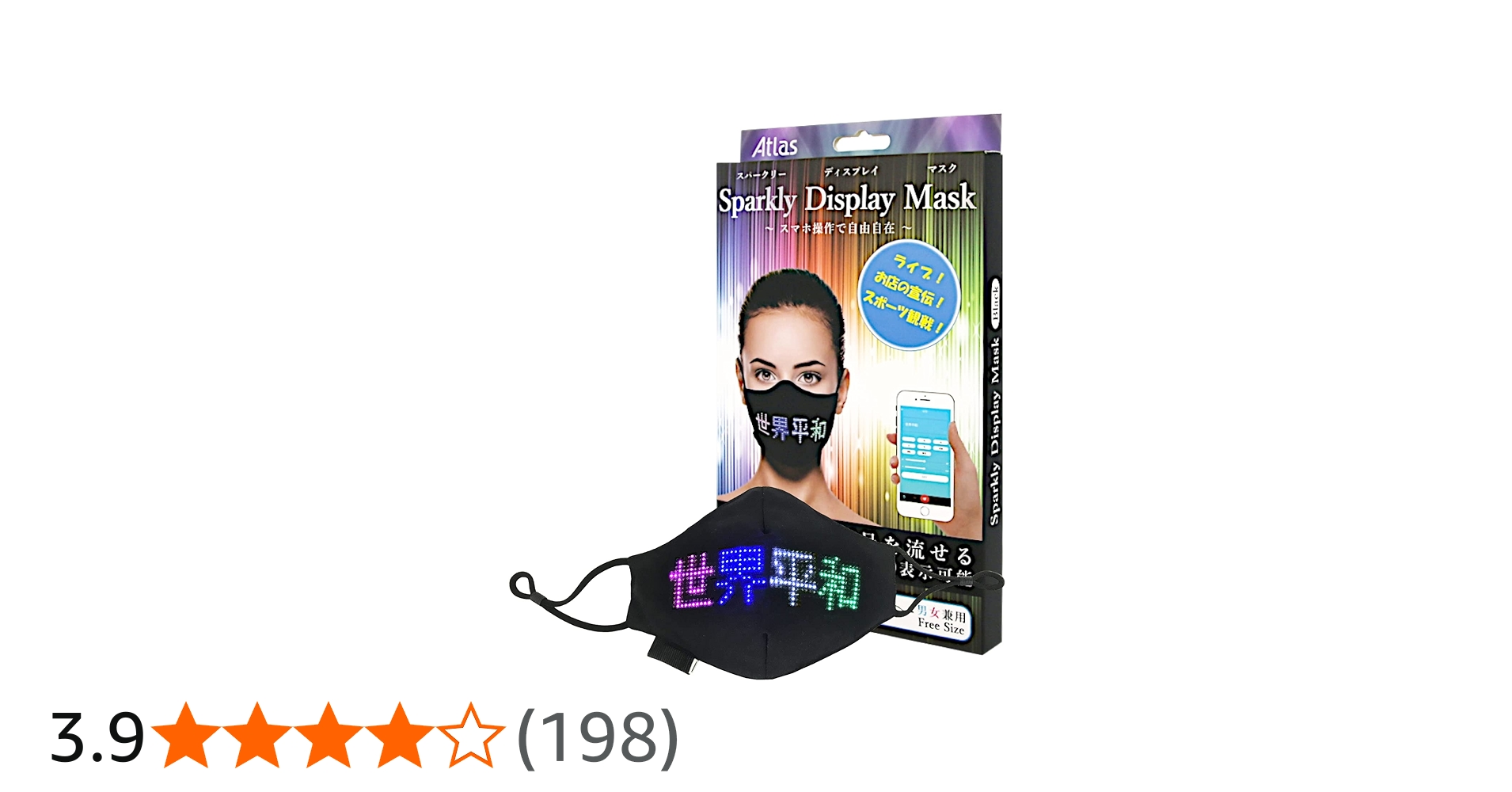 スマホ操作で文字を表示することが出来るディスプレイマスク。 バズる / インスタ映え / ハロウィン / スポーツ観戦 / 学園祭 / 体育祭 / LIVE / 誕生日会 / パーティー / 等幅広いシーンで目立つ。ギフト にも最適。大勢が...
