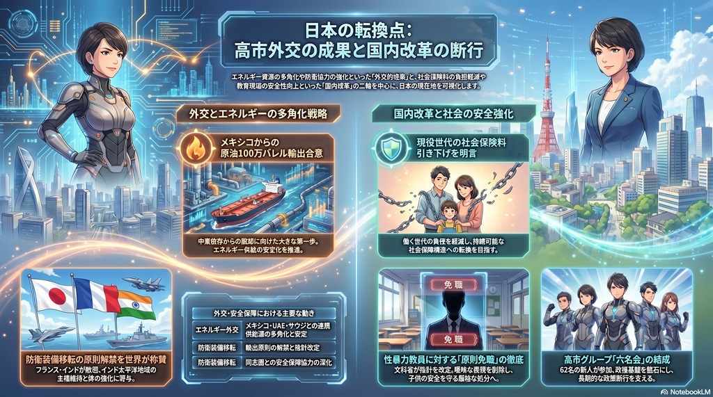 - 高市政権の外交・エネルギー政策、国内改革、辺野古事故追及、党内基盤強化の全要因まとめ