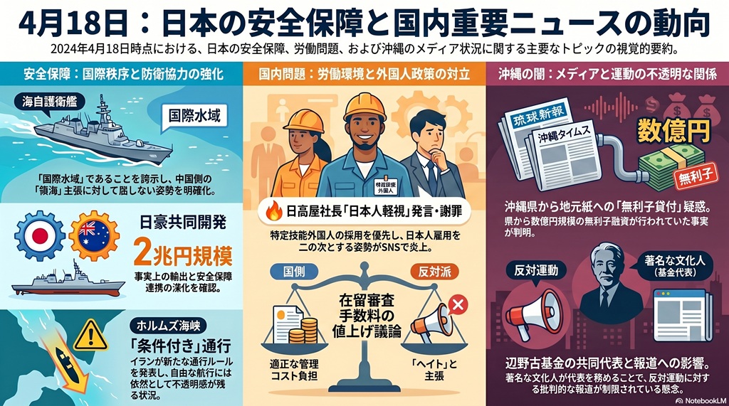 - 日本が直面する4つの課題:国際情勢・安全保障・労働問題・沖縄メディアの現状