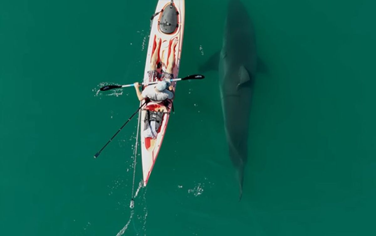- 「また会えた!」よく見かけるホホジロザメがカヤックに近づき並んで泳ぐ、奇跡の光景