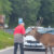 - ちょっと通りますよ。ビーバーが巨大な木を運ぶため道路を横切り、交通渋滞が発生