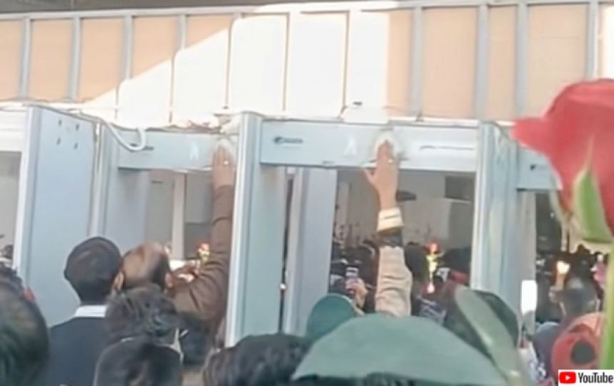 - 新たな信仰対象は寺院のセキュリティゲート?次々にタッチして通る信者たち