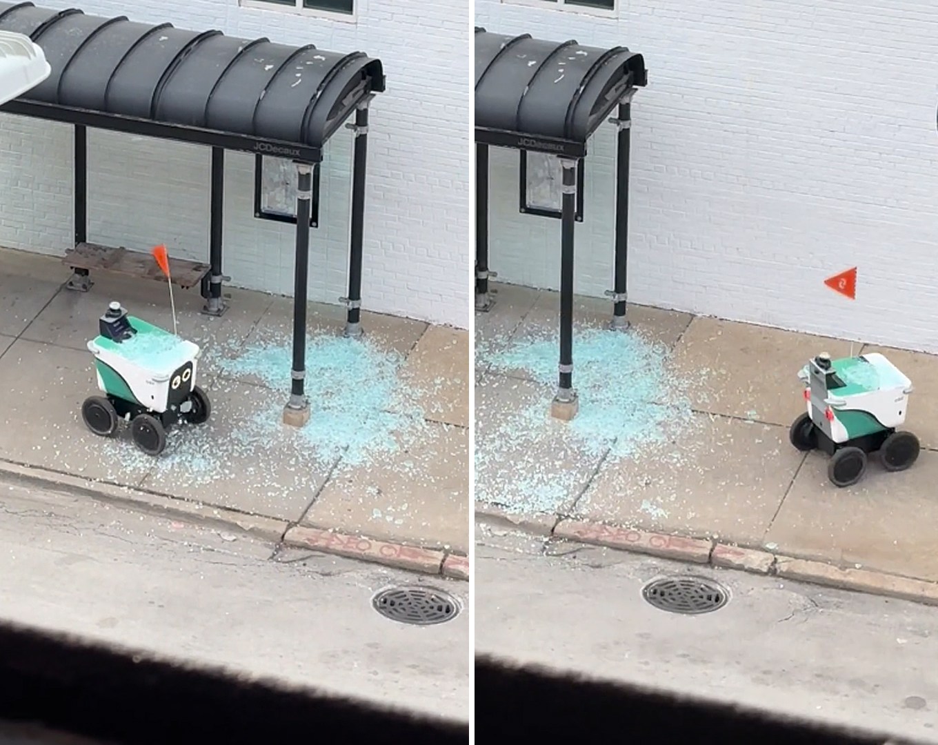 - ガシャコーン!食品配送ロボットがバス停留場のガラスに激突し逃走