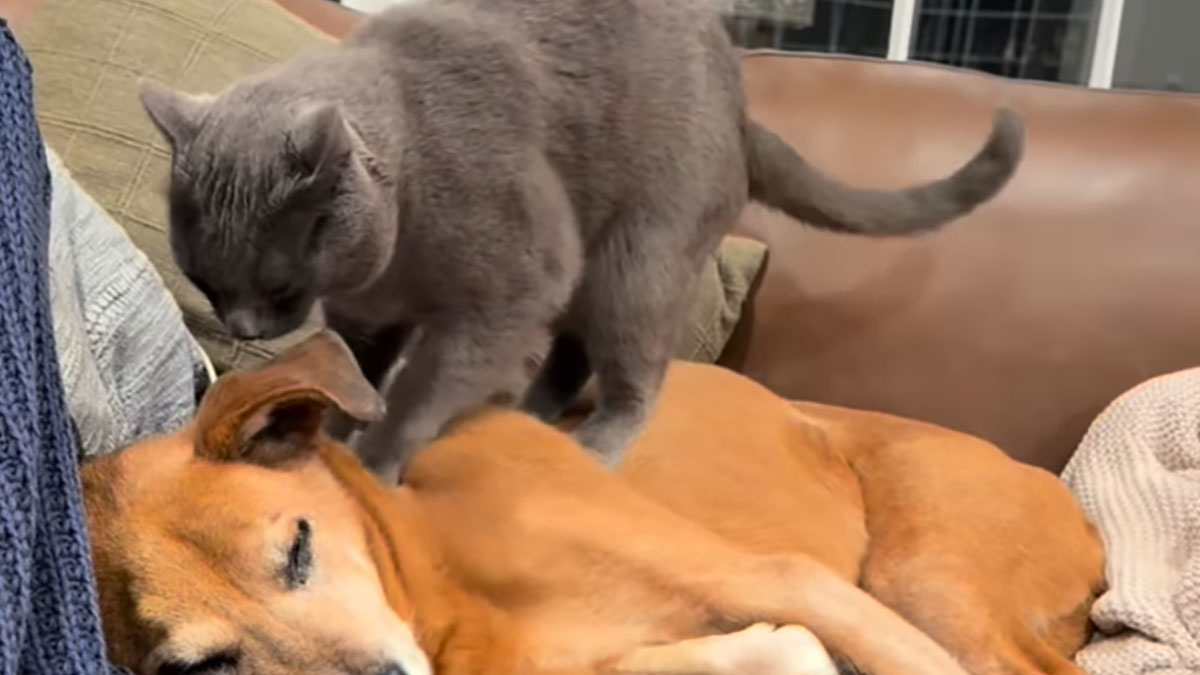- それなら得意にゃ!仲良しの犬の関節痛をやわらげるため、毎日マッサージを施す猫